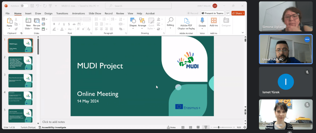 Astăzi am participat la întâlnirea periodică pentru proiectul Erasmus+ MUDI (Multidisciplinary design of a training for parents and teachers to prevent peer bullying), care își propune să realizeze programe online de prevenție a bullying-ului, dedicate părinților și profesorilor care predau la liceu. Fiind un proiect finantat prin programul Erasmus+, toate materialele și aplicațiile vor fi disponibile gratuit.