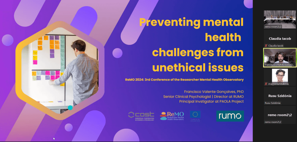 Ieri am participat la câteva sesiuni online ale Conferinței hibrid #ReMO 2024, cu tema ”Construirea unei rețele axate pe sănătatea mintală a cercetătorilor”. Iată câteva aspecte interesante pentru mine: